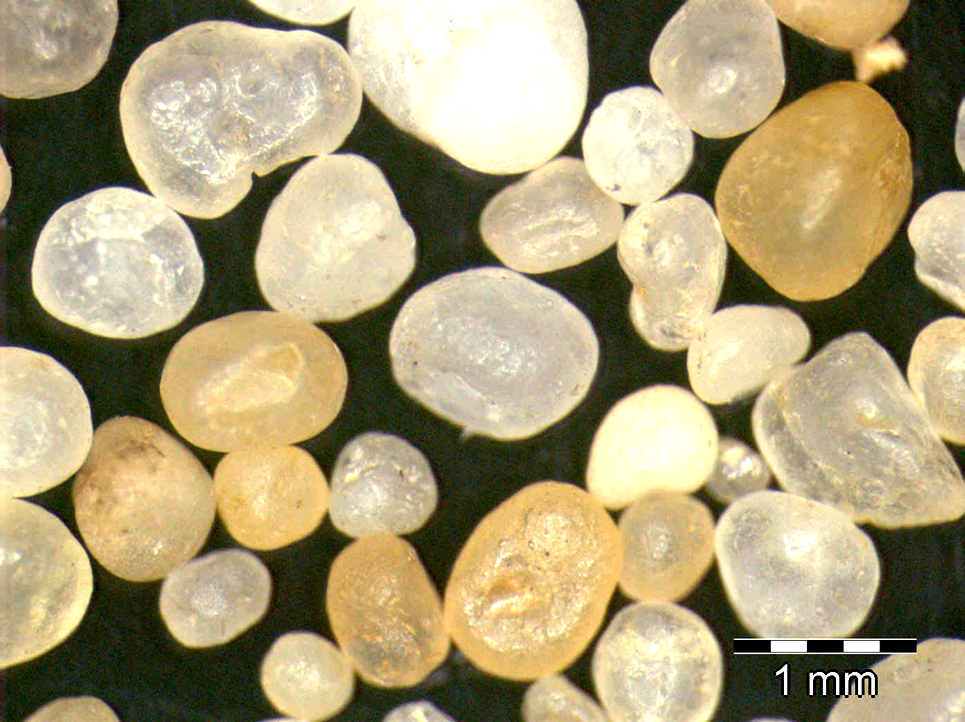 Les sables éoliens sont mats, émoussés à ronds, jaunes.
