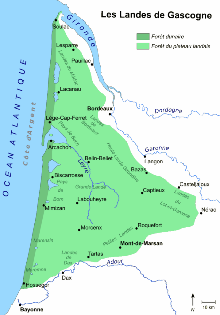 Les Landes sont un pays de sable, de formations très anciennes à récente, avec un sol et un sous-sol spécifique. Cette partie d’Aquitaine, appelée « Triangle des Landes » – qui va du nord, de l’embouchure de la Gironde, au sud à l’embouchure de l’Adour – est constituée de sables, gravillons et argiles recouverts d’un voile de sable éolien.